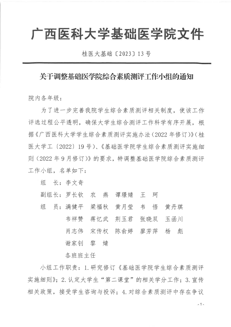 关于成立基础医学院2024届毕业生就业创业 工作领导小组的通知