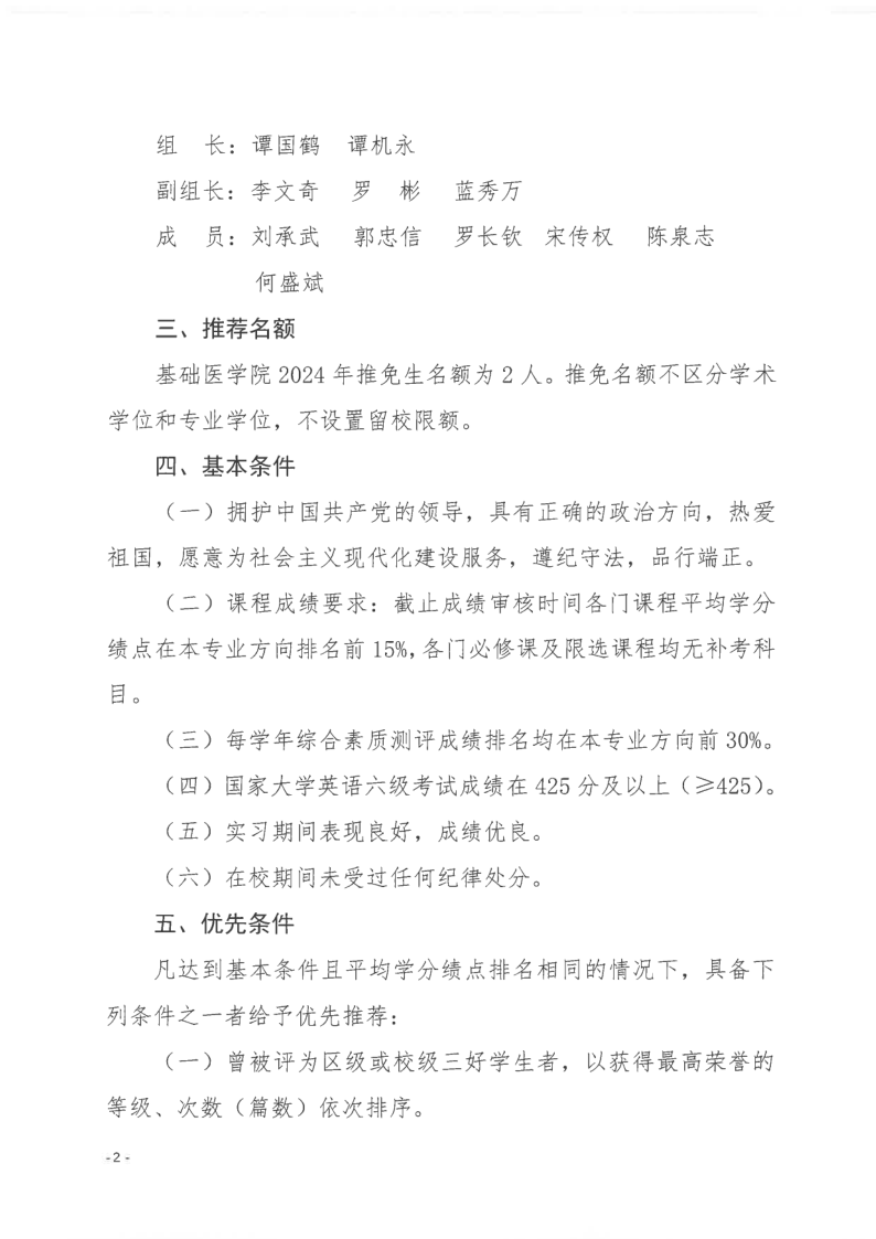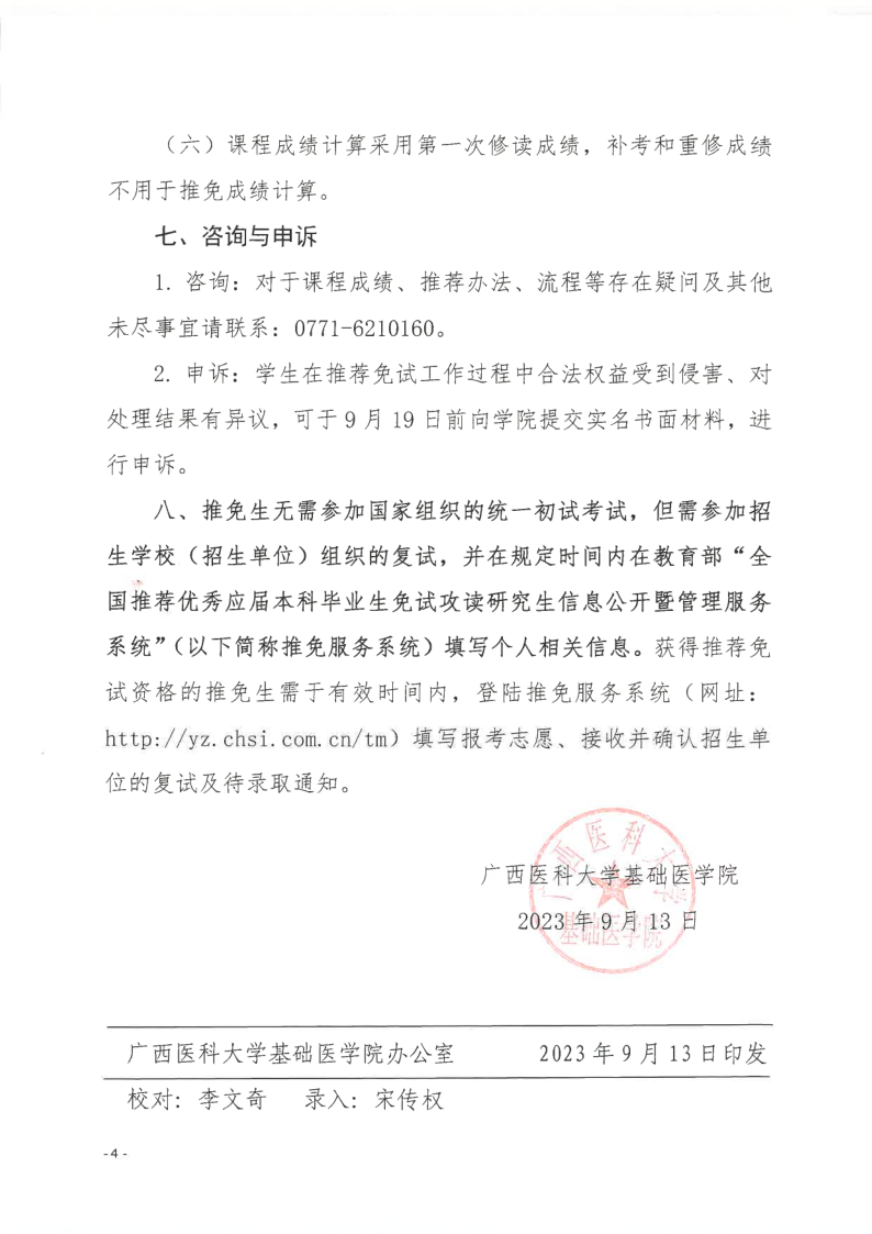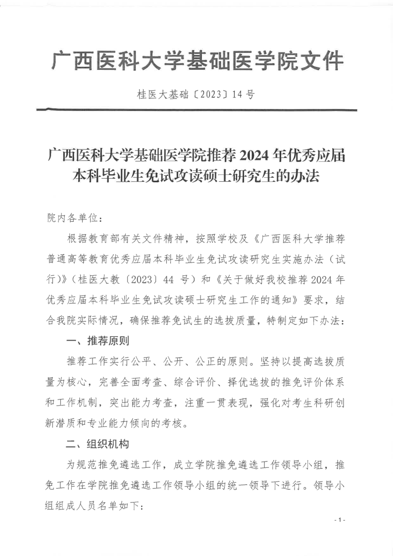 广西医科大学基础医学院推荐2024年优秀应届本科毕业生免试攻读硕士研究生的办法