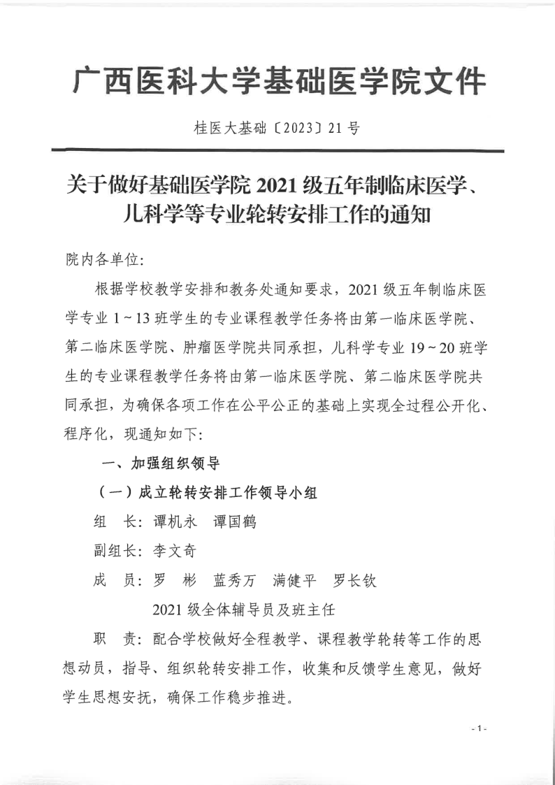 关于做好基础医学院2021级五年制临床医学、儿科学等专业轮转安排工作的通知