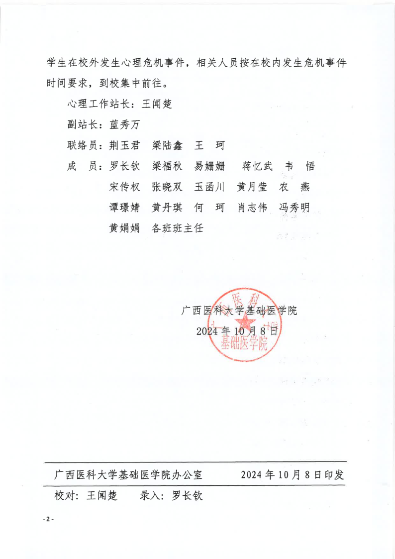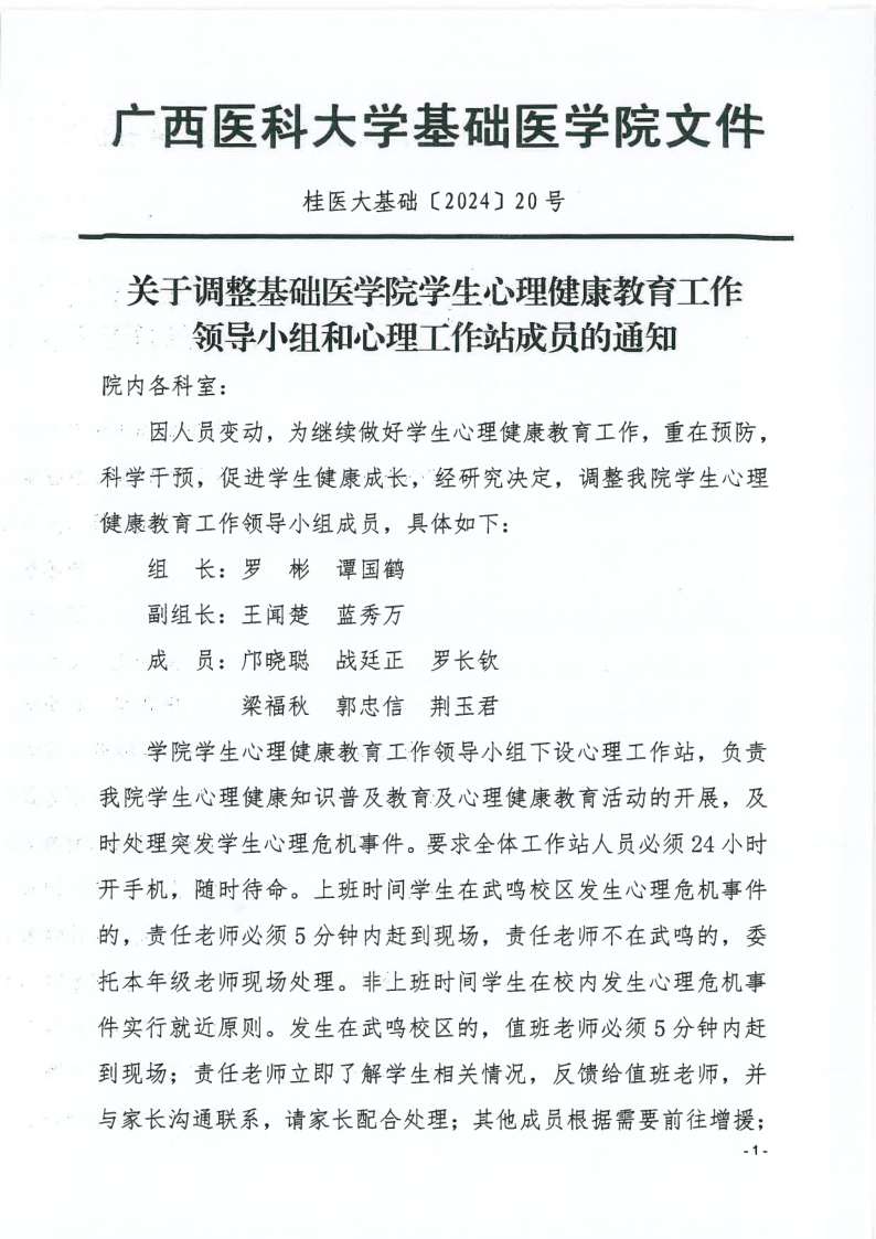 关于调整基础医学院学生心理健康教育工作领导小组和心理工作站成员的通知
