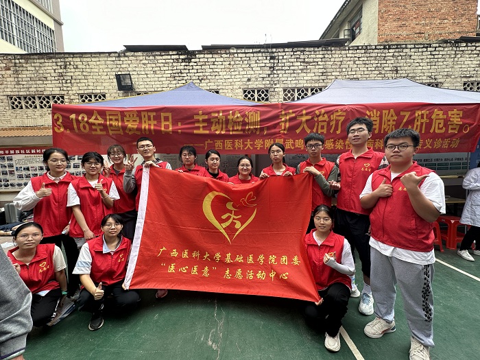 为深入学习贯彻党的二十大精神,全面贯彻落实习近平总书记关于学雷锋志愿服务的重要指示精神,响应世界爱肝日“主动检测、扩大治疗、消除乙肝危害”的号召,3月18日,广西医科大学基础医学院团委“医心医意”志愿活动中心与广西医科大学附属武鸣医院义诊团队一同于武鸣区和平解放社区居民委员会开展义诊服务活动。
