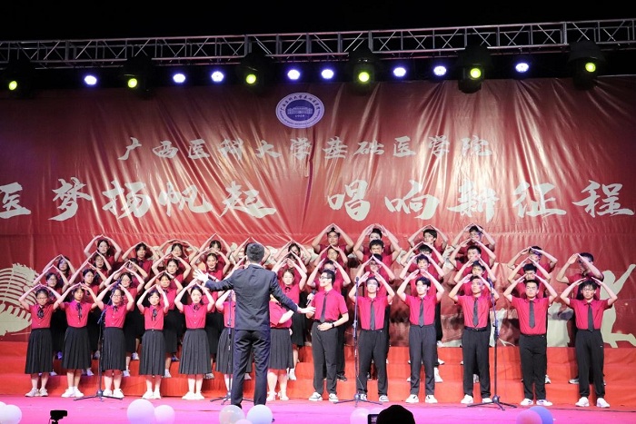 为深入学习贯彻党的二十大精神,展现青年学生风貌,丰富校园文化生活,营造积极向上、健康文明的校园文化氛围,2023年5月27日,基础医学院“医梦扬帆起 唱响新征程”五四合唱比赛决赛在武鸣校区A7前圆满落幕。基础医学院领导、二级学院代表,全体辅导员、班主任老师以及学院1000余名学生共同参与了此次活动。