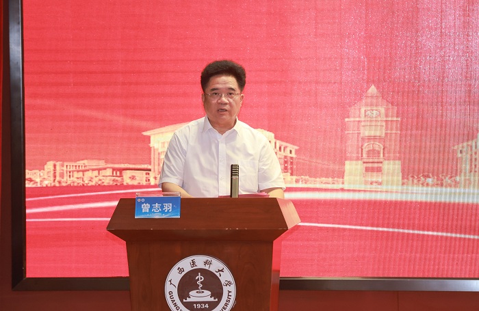 曾志羽校长在致辞中对基础医学院校友会的成立表示祝贺,对校友们为学校建设发展做出的贡献给予了充分肯定。他指出,基础医学院作为校本部最大的二级教学单位,始终扎根八桂大地谋发展,教育教学成绩斐然,科研实践成果丰硕,成为学校办学名片。曾校长用“希望”、“祝愿”、“期待”三个词对基础医学院的校友工作提出了殷切期望:一是希望搭建好交流合作平台,构建面向母校和校友的发展共同体;二是祝愿广大校友在事业上取得更优秀的成绩,为人类健康事业做更多贡献;三是期待基础医学院校友会踊跃参与学校90周年校庆相关筹备工作,支持学校的建设发展。