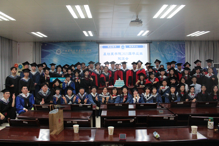 毕业骊歌起,扬帆再启航。6月27日上午,基础医学院在南宁-校本部为2023届毕业生举行欢送会。学院谭国鹤院长、李文奇副书记、蓝秀万副院长、研究生导师代表、毕业班辅导员和教师代表、2023届本科和研究生毕业生及部分家长代表出席欢送会。活动由李文奇副书记主持。