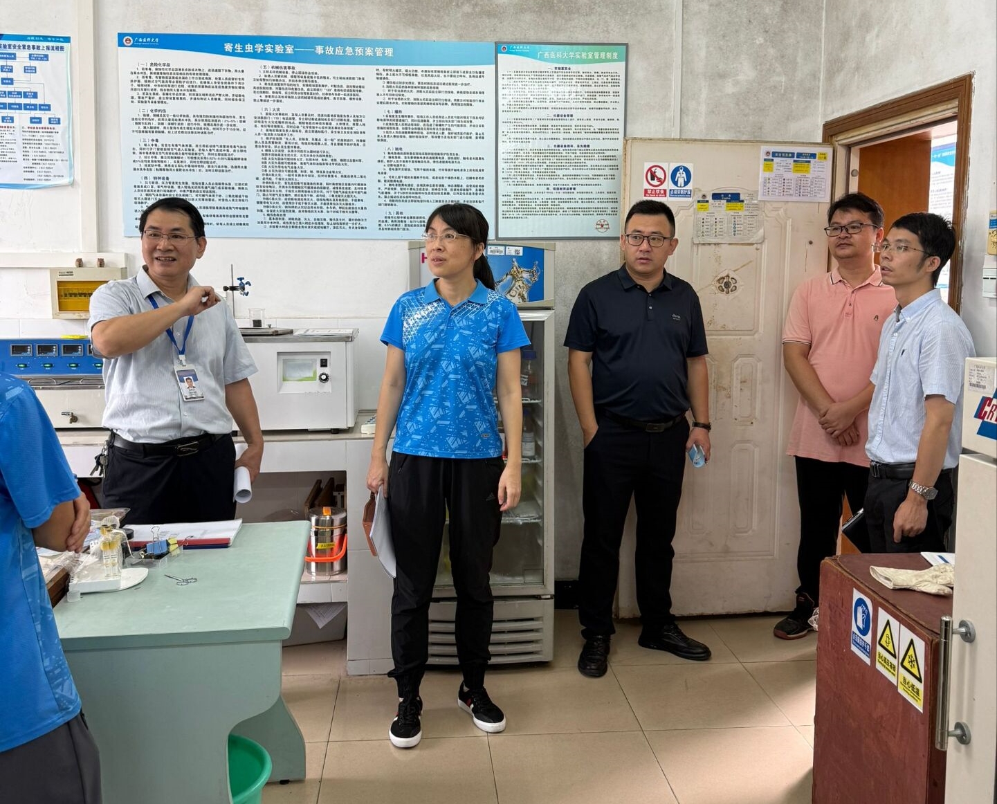 国庆节前,基础医学院院长罗彬、党委副书记王闻楚、副院长蓝秀万、战廷正对武鸣校区、校本部进行了节前安全检查,教研科和学办相关人员陪同检查。