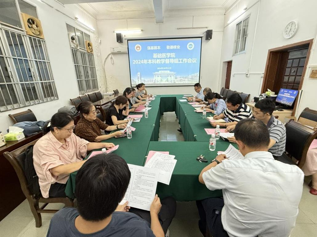 10月21日,基础医学院2024年本科教学督导组工作会议在103馆207会议室召开。督导组组长谢小薰、副组长罗彬、战廷正,督导组成员及教研科工作人员参加了会议。会议由战廷正副组长主持。