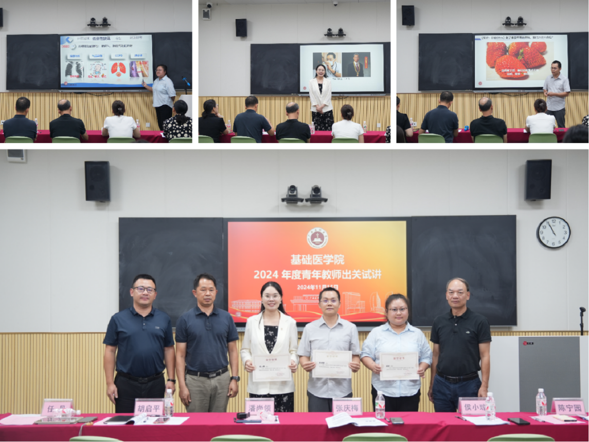 11月15日,基础医学院在药基楼第5教室举行2024年“青年教师过教学关计划”出关试讲暨入关仪式。学院院长罗彬、副院长战廷正、带教导师和各教研室青年教师参加活动。