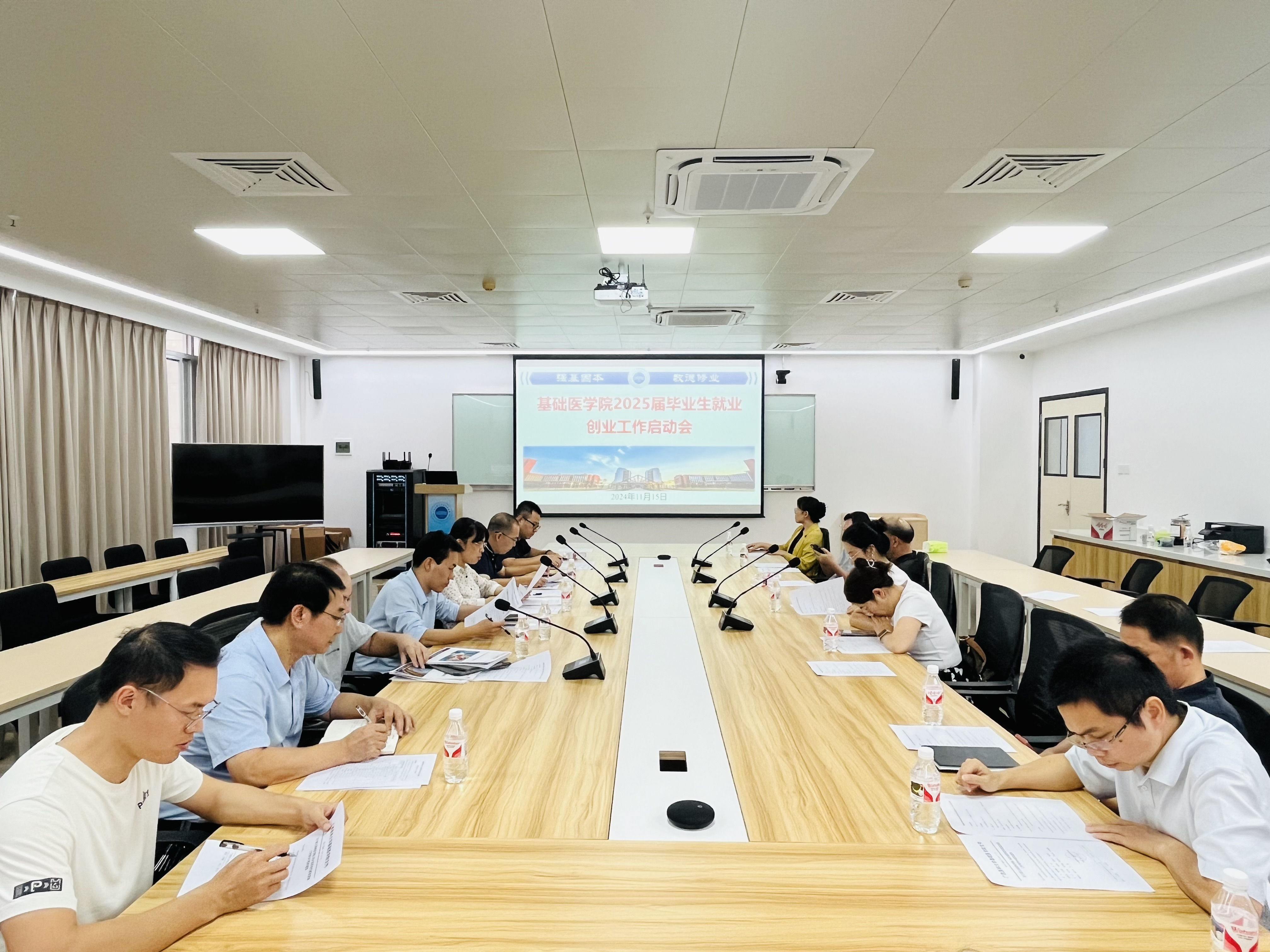 为落实学校关于2025届毕业生就业创业工作要求,促进毕业生高质量就业,11月15日下午,基础医学院2025届毕业生就业创业工作启动会在校本部药基楼5楼会议室召开。学院全体领导、研究生导师代表、2025届毕业班班主任和辅导员参加会议。会议由学院党委副书记王闻楚主持。