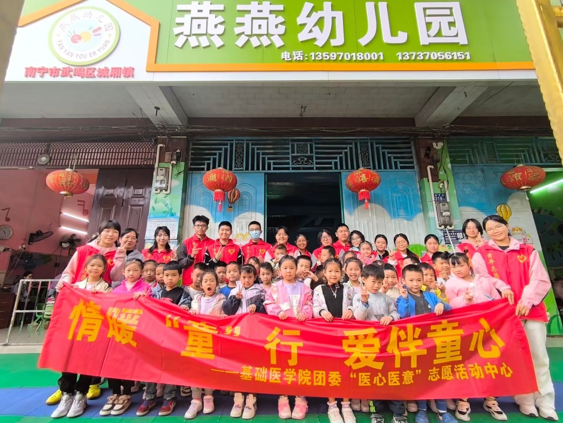 为传承“育苗护心”的优良传统,聚焦儿童健康成长,12月3日上午,基础医学院团委“医心医意”志愿活动中心带领志愿者们走进武鸣区燕燕幼儿园,开展以“情暖‘童’行 爱伴童心”为主题的志愿服务活动。本次活动共有16名志愿者参与,累计服务人数84人次。