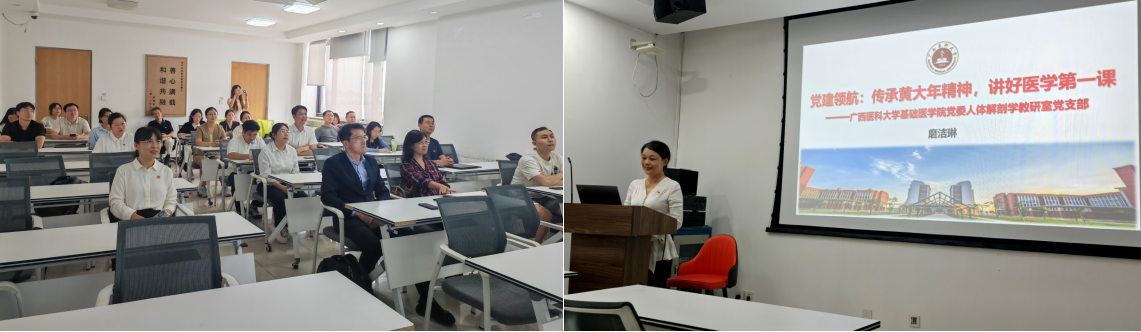 参会期间,全国“黄大年式”教师团队所在的人体解剖学与组织胚胎学党支部同清华大学肿瘤中心、再生衰老慢病中心与机关联合党支部开展了共建交流活动,围绕党建与业务融合进行了深入交流。本次会议拓展了AI赋能课程建设的新途径,也是两院之间进一步加强交流合作的切实体现。自2024年10月学院与清华大学基础医学院签署战略合作备忘录以来,两院持续深化合作,目前学院已选派2名教师赴清华大学访学和攻读博士后。未来,学院将持续加大对外交流合作力度,以交流促提升、以合作谋发展,以开放协作之力不断推动学院高质量发展。