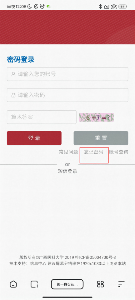 2.“电子离校单”查看路径:“毕业手续单(即红单)”办理完成后,在手机端浏览器(不要使用360浏览器)输入网址//swzx.8x8xsp.net/ydlx,登录“毕业生离校系统”,账号为本人学号,首次登录默认密码为“Gxykdx#身份证后六位”(如忘记密码,可采用短信登录或者点击“忘记密码”进行密码重置,见图2);登录后查看【领证状态】显示为【可领取】(见图3)方可领取毕业证书和学位证书(其中“离校备案”项目如显示为“未办理”无影响,可正常领证);如显示为【不可领取】(见图4),请携带相应材料到相关部门进行审核。