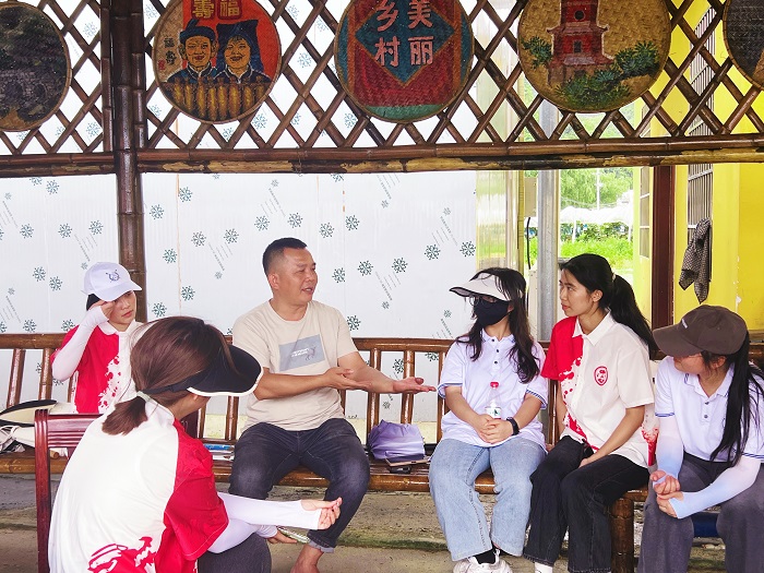 同学们向当地农民了解乡村振兴农业产业化发展成效