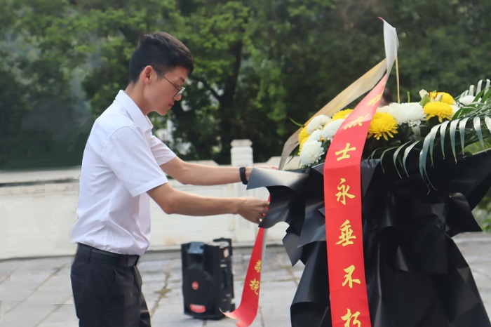 17日下午,实践团成员来到东兰县烈士陵园举行庄严的祭扫活动,向革命烈士敬献花圈,蒋忆武老师代表实践团整理挽联,表达深深的哀思和崇高的敬意。