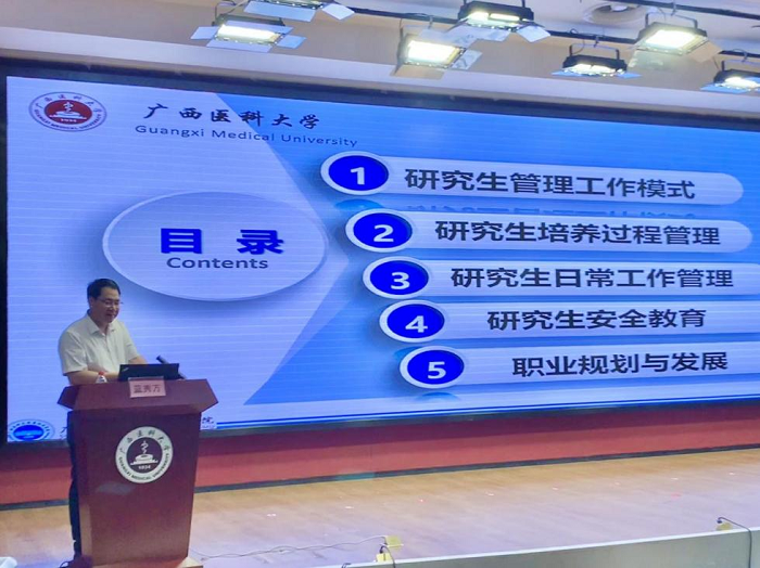 蓝秀万副院长做研究生培养管理专题培训,并叮嘱同学们要自觉学习学校章程,遵守各项规章制度,把握培养过程中关键节点,保持求真务实的态度,严防学术不端的行为。