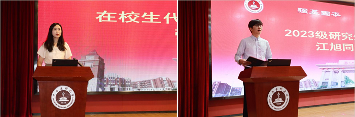 导师代表刘夏研究员结合自身经历,为新入学研究生学习科研提出了宝贵的建议。2021级博士研究生张薇作为在校生代表和2023级硕士研究生江旭作为新生代表分别进行了发言。
